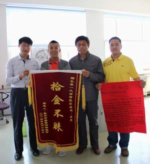 2014年5月27日,一面写有拾金不昧的锦旗和一封感谢信在机电工程学院吸引了广大师生的目光。一位来自于吉林省伊通县的苏先生紧紧握住辅导员老师的手,亲切的说:“谢谢你们培养出吕昂(2013级机电一体化专业)这样优秀的孩子”。此时此刻,机电工程学院辅导员办公室掌声雷动,气氛祥和,老师和同学们倍感骄傲和自豪。
