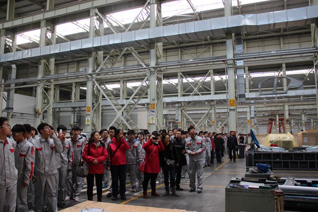 当师生们排着整齐的队伍浩浩荡荡到达一汽模具制造有限公司时,受到了公司相关人员的热情接待和热烈欢迎,吴宇飞代表公司鼓励学生努力学习科学文化知识,并表示愿意接纳我校学生毕业后到公司从事技术工作。之后,他安排专业技术人员带领同学们有秩序地参观了模具事业部的数控车间与调装车间、冲焊制造基地,对生产流程及每个生产部件进行介绍,我院各教研室教师也针对同学们提出的疑问进行解答。同学们认真倾听并细致观察、拍照,不断发出赞叹声,表示不虚此行。