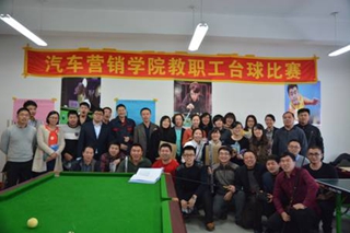 2014年12月13日,汽车营销学院首届教职工台球友谊赛成功落下帷幕。通过激烈角逐,男子组谢荣飞获一等奖,高福军、薛鹏获二等奖,王泽生、王伟、徐志鹏获三等奖。女子组戚小男获一等奖,毛英慧获二等奖,房文娣、王旭获三等奖。