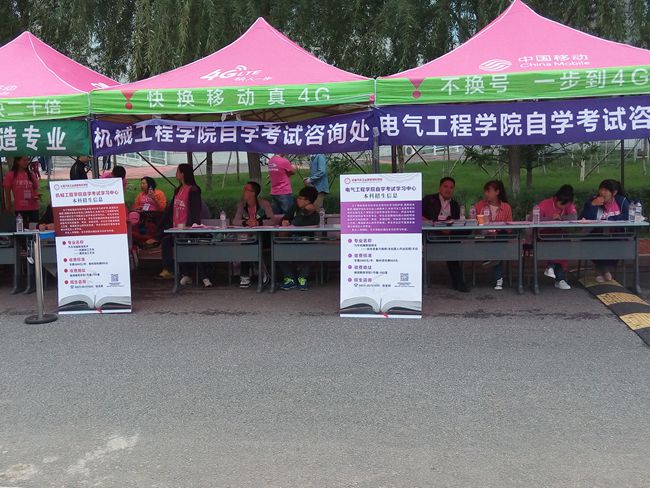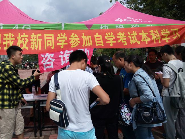 各学院非常重视招生宣传工作,在迎新现场设置了自学考试咨询处,继续教育学院提供了招生宣传板、简章、报名表等基本服务工作。