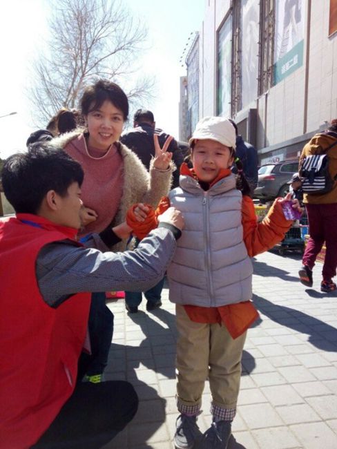 图3志愿者们为行人系蓝丝带