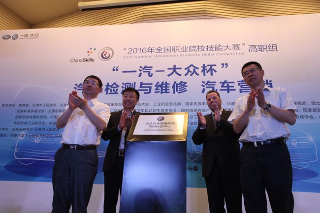 为体现汽车主题特色,赛事安排了异彩纷呈的赛外活动。开赛式后,报告厅举行了全国新能源汽车职教集团揭牌仪式和大众汽车高级师资培训认证中心落成揭牌仪式。