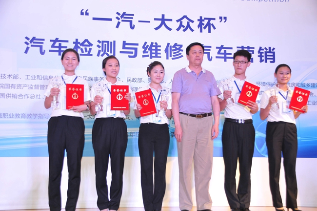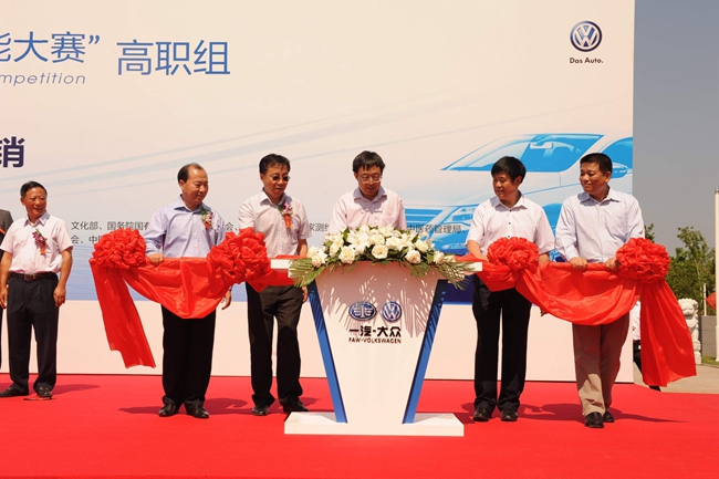 管委会主任李长明、机械职业教育发展中心主任陈晓明、一汽大众副总经理胡咏共同启动大赛开赛