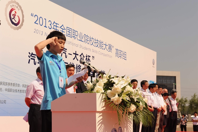 2013年长春汽车工业高等专科学校参赛选手谭昌博代表参赛选手宣誓