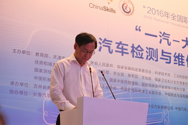 吉林省教育厅副厅长战高峰,一汽大众销售有限责任公司服务技术培训部部长沃尔特、培训规划经理张海阔,吉林省教育厅职成处副处长姜云东,长春市教育局职成处处长孙明学,博世汽车服务方案中国区独立售后市场营销总监李秀峰,长春汽车工业高等专科学校校长李春明、副校长明晓辉、校长助理胡国良等领导和行业、企业嘉宾出席了闭赛式。参加闭赛式的还有来自全国31个省、自治区、直辖市和新疆生产建设兵团职业院校的领导、指导教师、参赛选手、裁判员、以及新闻媒体朋友。长春市教育局副局长张茂金主持闭赛式。
