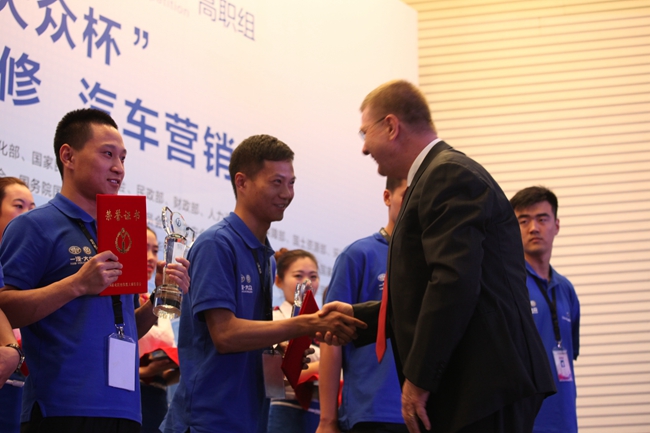 一汽-大众销售公司服务技术培训部德方部长沃尔特颁发团体一等奖