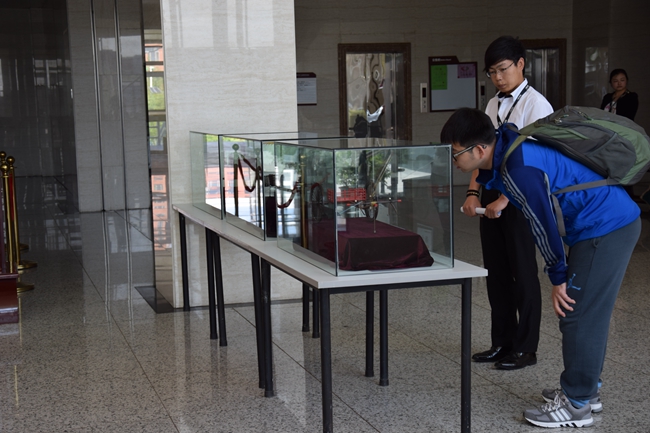 展出的作品包括车辆发展史上极具代表性的7辆车模、6件瓦楞纸环保创新作品。其中车模包括6辆1:20的车模和1辆1:1的古战车车模。这两辆1:1的车辆模型是由学生自主研发、采用新型有机复合材料制作而成的,该材料具有成本低、易加工、环保的特性。又经过仿古加工,展现出了完美的青铜效果,引来了大批的围观者并受到青睐。