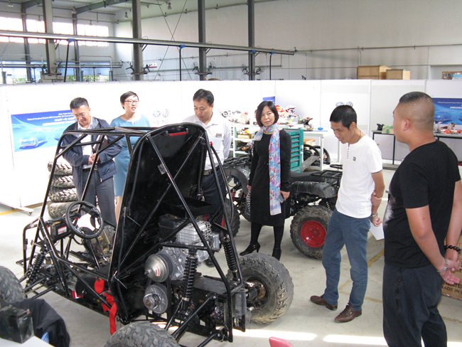 应春来部长(右二)和朱葛明部长(左三)参观我校领跑者赛车队巴哈赛车