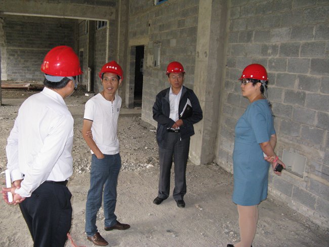 应春来部长和朱葛明部长对新汽车工程学院楼进行实地考察