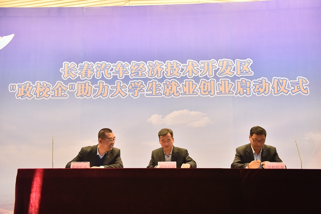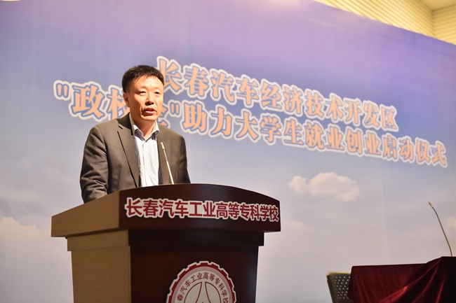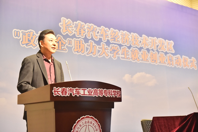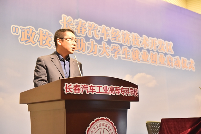 汽车经济技术开发区党工委副书记、纪工委书记张世杰,长春施耐利自动化工程有限公司副总经理刘春雨分别代表政府和企业发言,他们在发言中表示 “政校企”联合助力大学生就业创业工程进一步打通了“政、校、企”之间的联通渠道。汽开区就业服务局局长张东芬主持会议并介绍了“助力启航”工程的具体情况。