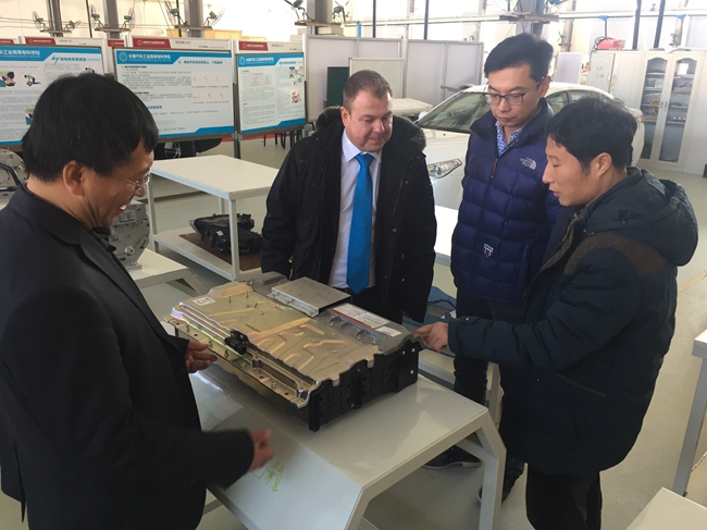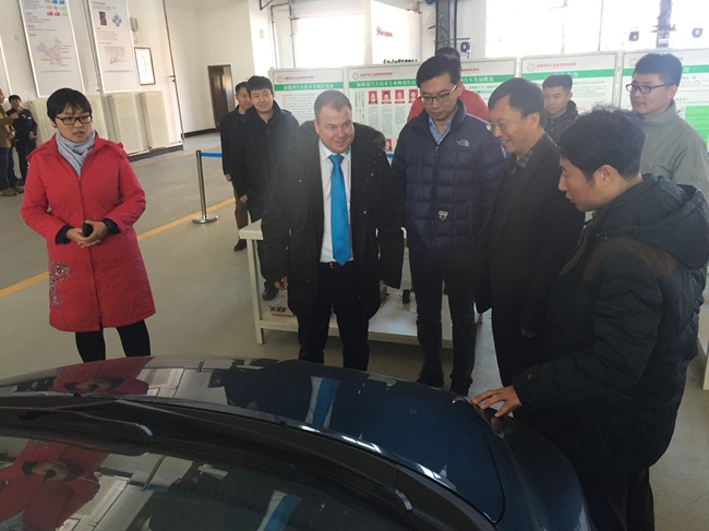 赵宇院长向辛德勒先生分别介绍了学校以及汽车工程学院的概况、专业设置、办学理念、人才培养模式等内容,重点介绍了学校重点建设专业之—新能源汽车技术专业、课程设置、针对新能源汽车的研发与调试等内容,强调该专业的培养目标是掌握新能源汽车技术的复合型技术技能人才。辛德勒先生介绍了德国ITW公司的概况和培训类服务业务,并探讨合作事宜,特别是寻求在新能源汽车高压电培训方面的合作事宜。