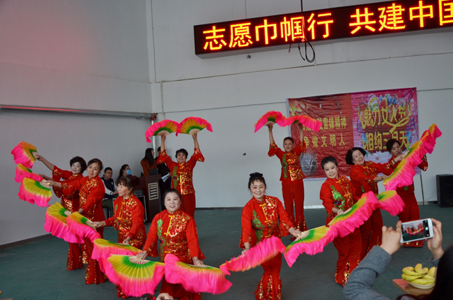 随着社区大爷大妈们欢快的器乐齐奏,活动开始。在嘉宾致辞环节,我校于磊同学代表学雷锋小分队讲话。之后是舞蹈《欢聚一堂》,带动了全场欢快的气氛,刚劲有力的《太极功夫扇》引起全场惊呼。我校学雷锋小分队带来的小品《我是雷锋》更是赢得全场热烈掌声。此次“志愿巾帼行,共建中国梦”活动,节目多姿多彩,合唱《鸿雁》、《大中国》、三句半《妇女颂》等,活动在社区全体人员饱含深情的大合唱《敖包相会》中结束。