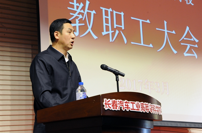 李春明最后指出,如果说“转型”是阶段性任务,那么“升级”就是学校今后工作不断追求的目标。2017年,全体教职工要从“自己”做起,进一步解放思想、团结协作、脚踏实地、开拓创新,自觉担负责任,层层分解任务,将工作落到实处,不断提升办学实力,为建成一流高职院校而努力奋斗。