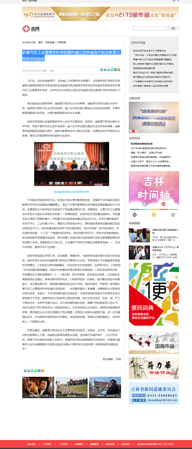 吉网——长春汽车工业高等专科学校顺利通过吉林省现代职业教育示范校项目验收