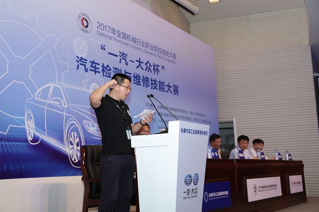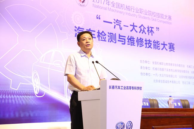 最后,机械工业发展中心主任陈晓明致辞。陈晓明感谢吉林省教育厅、长春汽车工业高等专科学校、一汽-大众给予赛事的无私支持,并特别鸣谢了对我国职业教育提供了巨大支持和帮助的大众德方代表。随后他宣布“2017年全国机械行业职业院校技能大赛汽车类专业技能竞赛开赛!”
