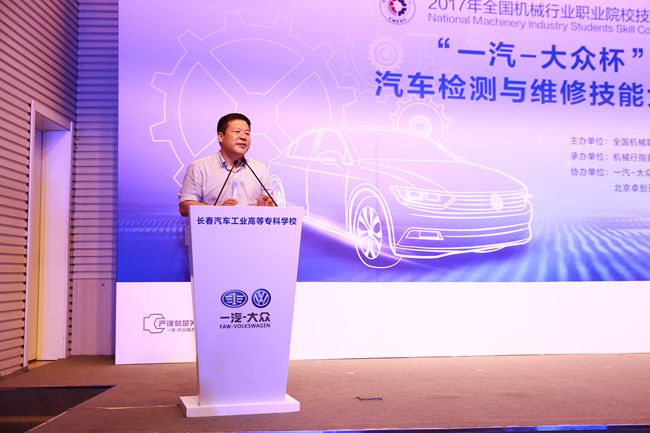 长春汽车高专副校长胡国良主持2017年全国机械行业职业院校技能大赛“爱夫卡杯”商用车汽车检测与维修技能大赛闭赛式