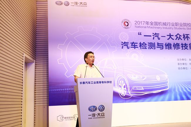长春汽车高专副校长明晓辉主持“一汽大众杯”汽车检测与维修技能大赛闭赛式