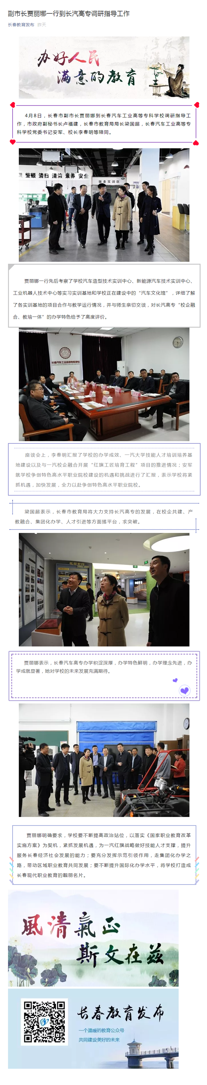 长春教育发布——副市长贾丽娜一行到长汽高专调研指导工作