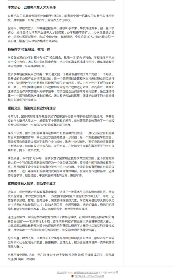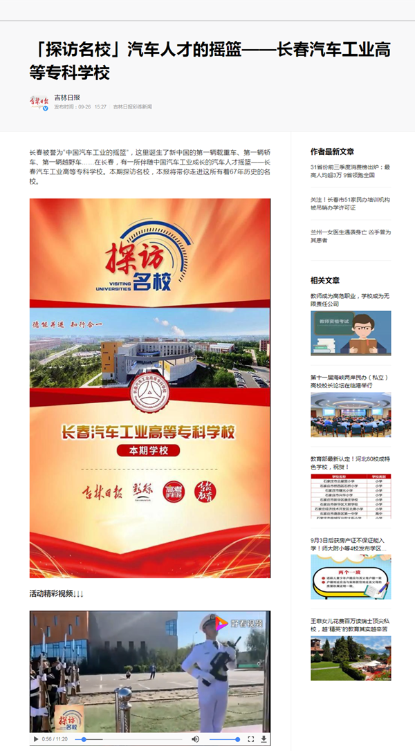 吉林日报——[探访名校]汽车人才的摇篮 长春汽车工业高等专科学校