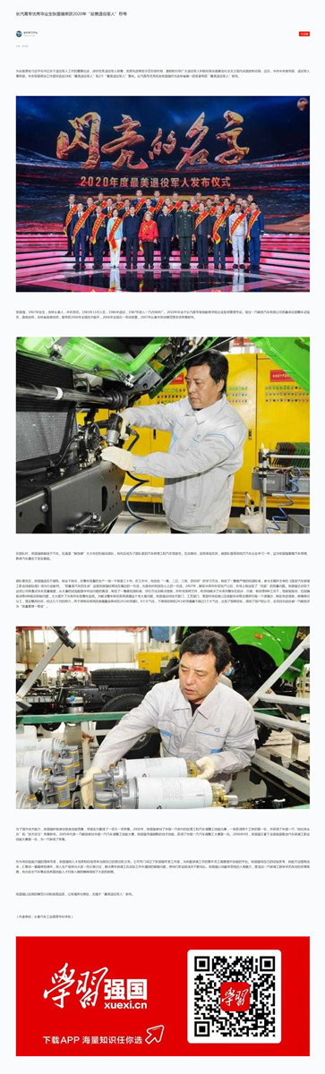 学习强国——长汽高专优秀毕业生张国强荣获2020年“最美退役军人”称号