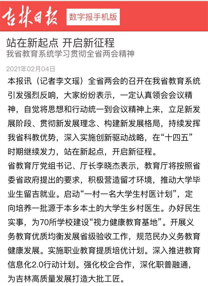 吉林日报——站在新起点 开启新征程 我省教育系统学习贯彻全省两会精神