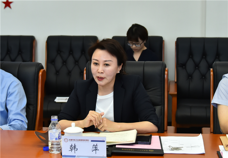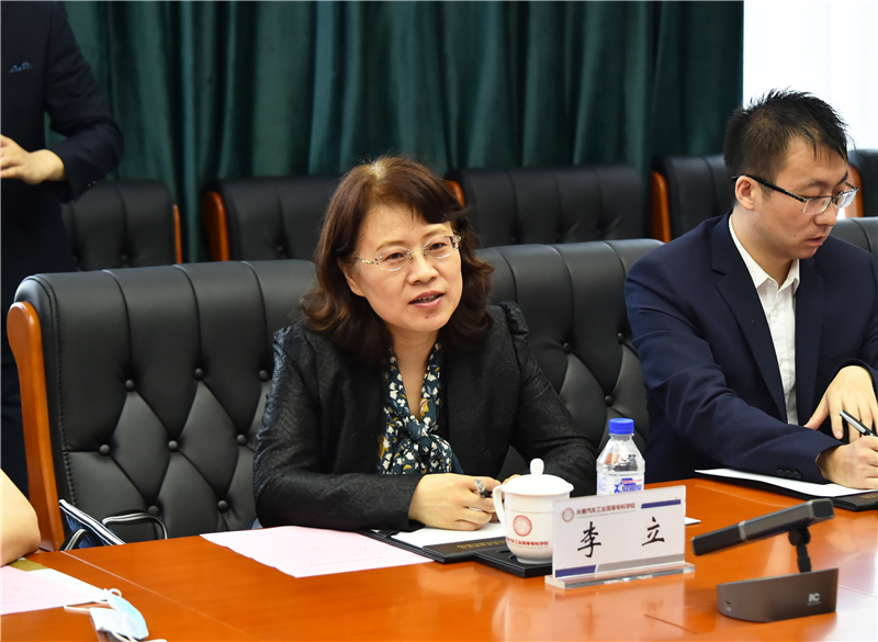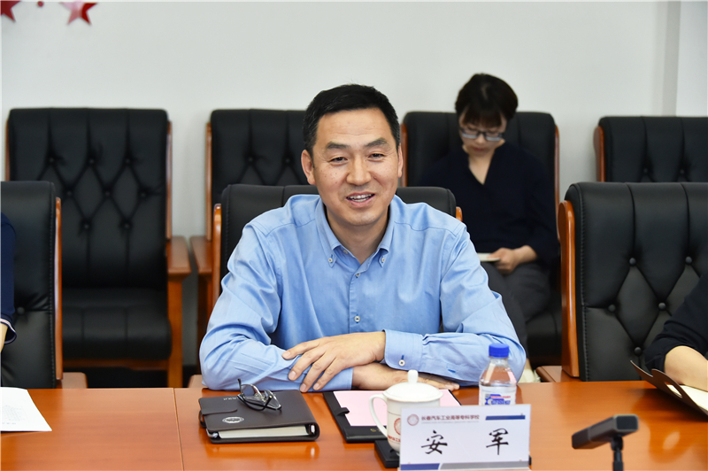 安军首先对学校历史沿革、改革发展、教育教学等情况进行了总体介绍,具体介绍了学校在融入长春国际汽车城发展过程中提供的人才智力支持,并详细汇报了现阶段“双高”建设任务的进展和本科层次职业学校申报工作情况。