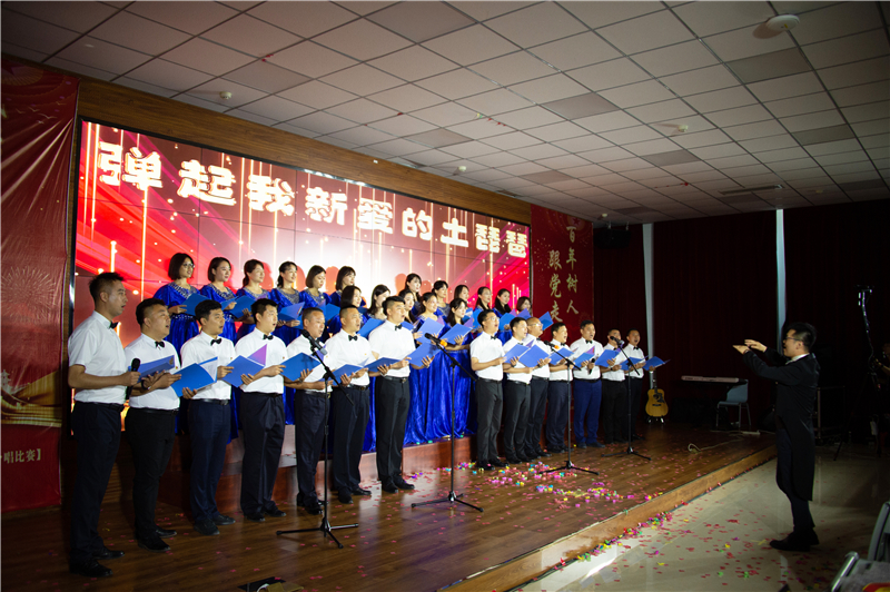 活动在“不忘初心”的乐曲声中拉开序幕,参赛人员精神饱满、衣着整齐、歌声嘹亮。《爱我中华》《走向复兴》《歌唱祖国》、《没有共产党就没有新中国》《走进新时代》《中国,中国,鲜红的太阳永不落 》《在灿烂阳光下》《弹起我心爱的土琵琶》《社会主义好》、《红星照我去战斗》《团结就是力量》,一首首红色经典歌曲,带领人们重温了在党的领导下中华儿女共同建设伟大祖国的光辉历程,全体演员用真挚的情感,用音乐语言讲述党的发展史,描绘党的奋斗历程,唱出了对祖国的无限热爱,对党和人民的无限忠诚。