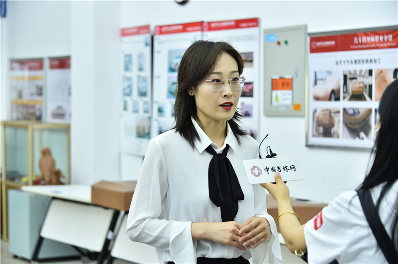 随后,采访团分别参观了红旗汽车剪纸作品展,汽车工程学院汽车造型教学工坊、新能源汽车技术专业和汽车智能技术专业实训基地,汽车运用学院孙雪梅技能名师工作室,电气工程学院齐嵩宇名师工作室,创新创业孵化基地,汽车营销学院物流仿真教学工坊,培训与继续教育学院技能等级认证基地等,通过对正在上课的师生进行现场采访,全面了解我校在职业教育上取得的创新性、标志性、引领性的改革发展新成果,记录我校在职业教育发展历程上的新担当、新突破、新作为。