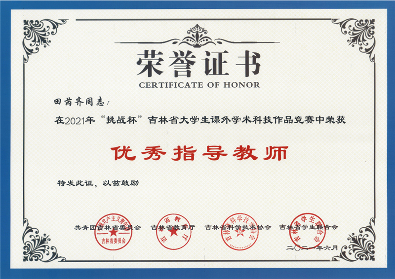 日前,2021年“挑战杯”吉林省大学生课外学术科技作品竞赛决赛在长春中医药大学落下帷幕。我校获得一等奖1项、二等奖1项、三等奖5项的喜人成绩,田芮齐老师荣获优秀指导教师奖,学校荣获优秀组织奖。