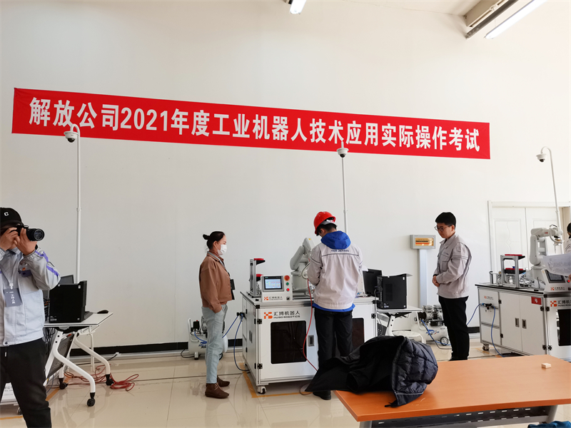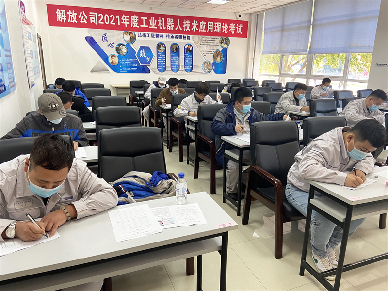 启动仪式结束后,解放公司首届工业机器人技术应用大赛鸣锣开赛,共24名选手参加角逐。大赛考核设置理论考试和技能操作两大环节。参赛选手在赛前做了积极的准备,在理论考试和技能操作比赛过程中,选手们表现精彩、技能娴熟,充分体现了较高的职业素养。