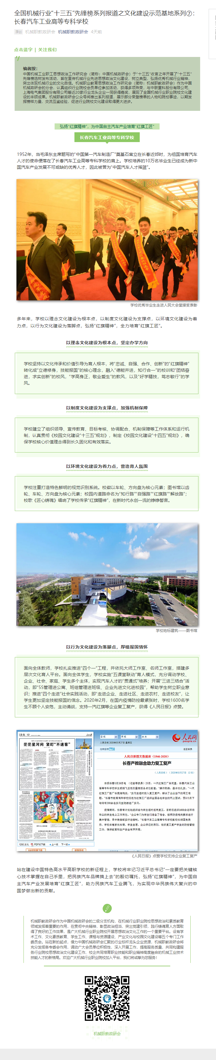 全国机械行业“十三五”先锋榜系列报道之文化建设示范基地系列⑦:长春汽车工业高等专科学校
