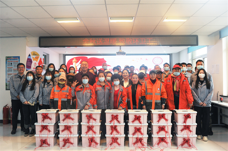 为环卫工人代表发放慰问品