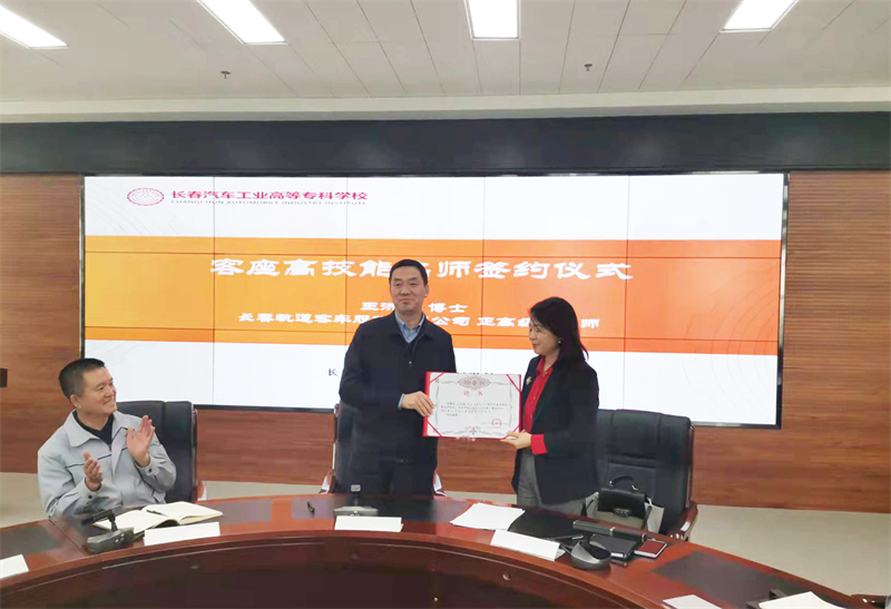 11月25日,我校举行客座高技能名师签约仪式。党委书记安军代表我校与长春轨道客车股份有限公司正高级工程师王洪潇博士
