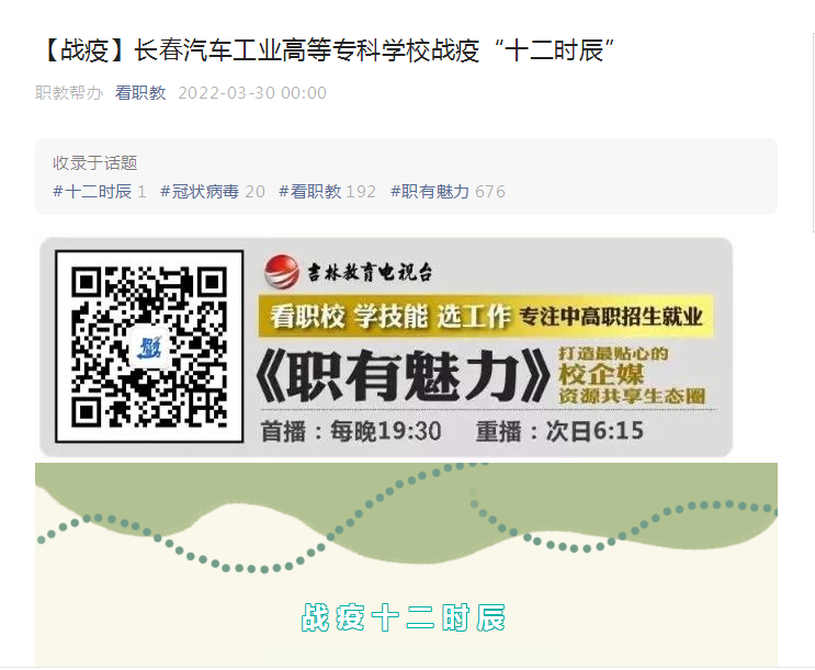 看职教——【战疫】长春汽车工业高等专科学校战疫“十二时辰”