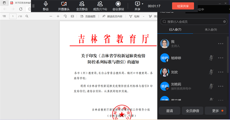 本次主题党日活动以三个党小组为单位,由各党小组组长领学吉林省教育厅《关于印发<吉林省学校新冠肺炎疫情防控系列标准与指引>的通知》文件精神,重点学习吉林省学校师生员工新冠肺炎感染个人防护手册部分内容,通过学习进一步强化党员教师加强个人卫生防护意识。