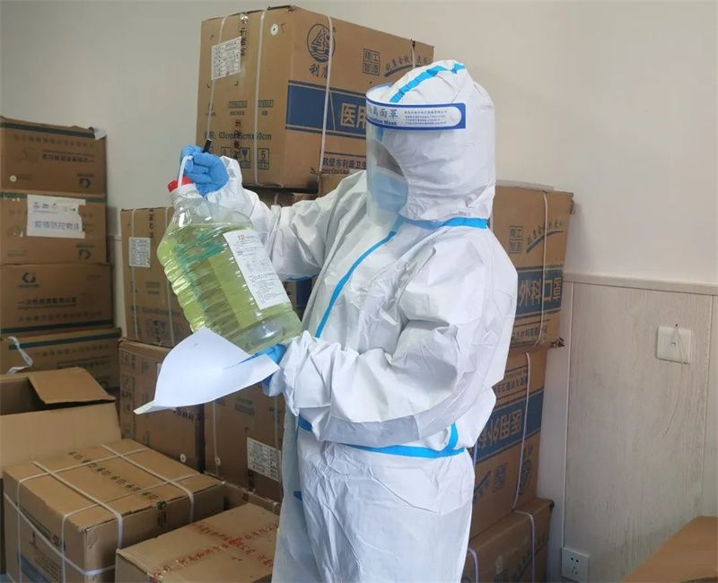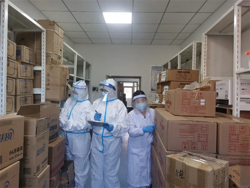 在疫情防控这场没有硝烟的战役中,总务处教师张洪艳和卫生所护士长董玉梅负责防疫物资的管理和发放工作。