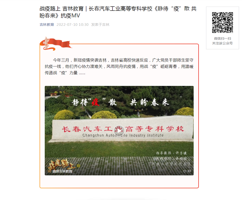 吉林教育——战疫路上 吉林教育 | 长春汽车工业高等专科学校《静待“疫”散 共盼春来》抗疫MV