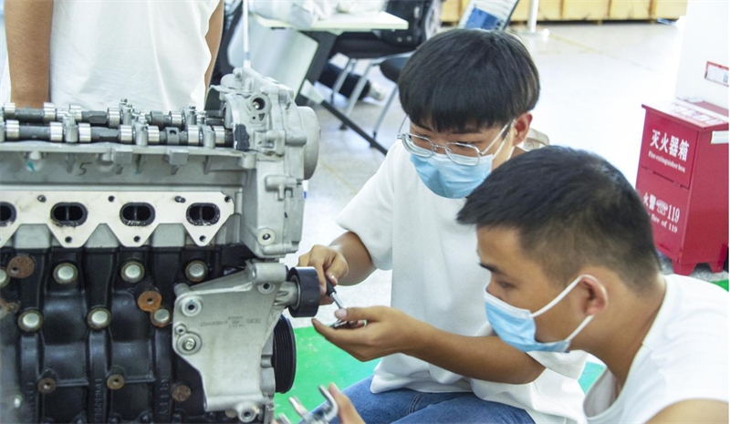 在“车辆发动机拆装”体验项目中,学员们自己动手对发动机进行拆装,将平时学习到的理论知识在实践过程中进行验证,锻炼了学员的团队合作意识与动手实践能力。
