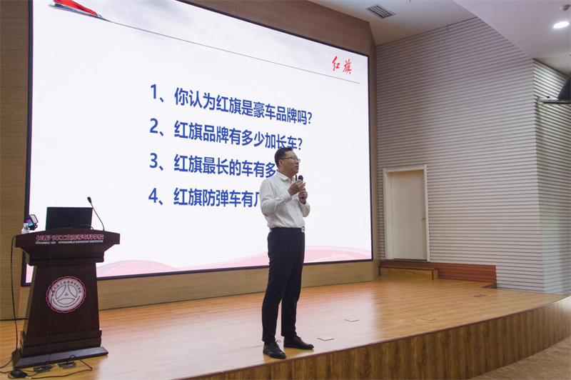 集团公司办公室高级主任谢滨涛围绕一汽集团基本情况、红旗的发展历程等向学员们展示了企业的光辉历程和未来发展前景。