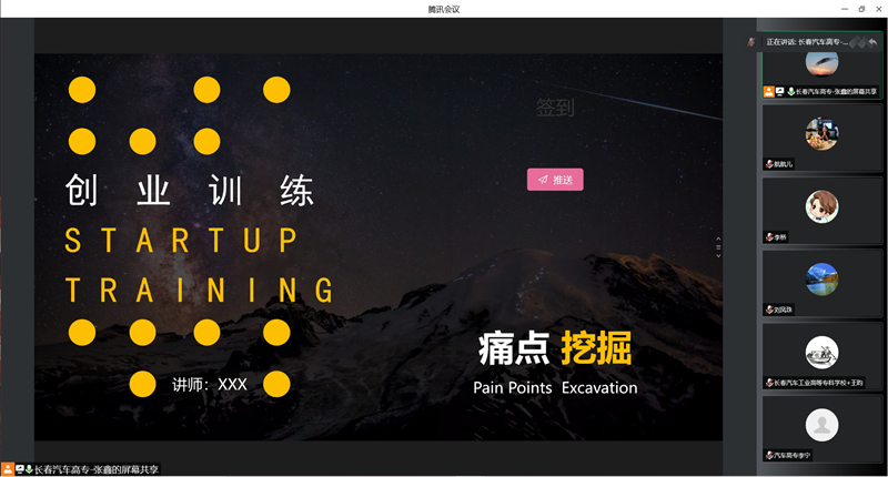 严控教学过程质量,集体备课标准输出。创新创业教学团队为保证本轮课程改革的教学质量,在开课前,对全体任课教师进行信息化教辅工具课前辅导,并组织集体备课。信息化教学工具在开展课堂互动和训练的同时,可以随时采集学生的学习数据并管理学生的学习行为,大大减轻了线上教师的工作量。在集体备课过程中,主讲教师针对课程模块介绍了课程整体教学逻辑和教学设计,任课教师更加清晰地明确自己的职责和任务,理清主讲教师和任课教师在课堂上的关系。新颖的授课形式和教学手段得到了教师们的一致好评。