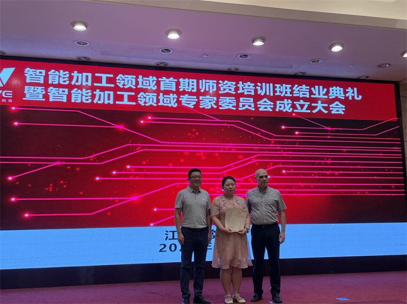 8月15日,由常州机电职业技术学院承办的教育部中德先进职业教育(SGAVE)项目智能加工领域首期师资培训班结业典礼暨智能加工领域专家委员会成立大会在常州举行。SGAVE 项目秘书处高级专家KJ. Brix 先生,15名来自相关领域的专家学者和来自全国10所首批SGAVE项目试点院校的50余名参训教师参加会议。我校教师孙力伟、王庆辉、李爱淑、徐恒斌圆满完成29天的受训任务,获得首期师资培训证书。机械工程学院负责人陈艳辉、国际交流学院院长刘凤珠、机械制造与工业检测教研室主任顾佳超参加会议。