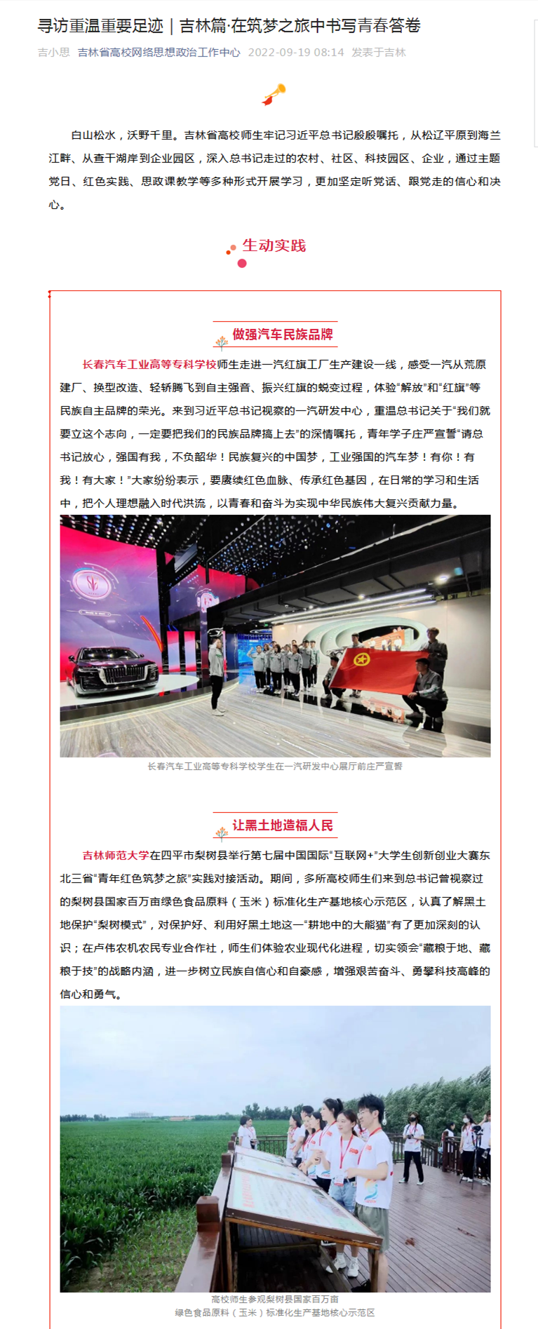 吉林省高校网络思想政治工作中心——寻访重温重要足迹|吉林篇·在筑梦之旅中书写青春答卷