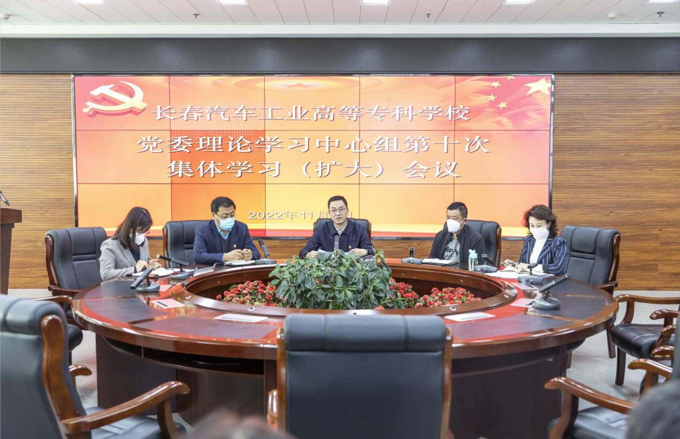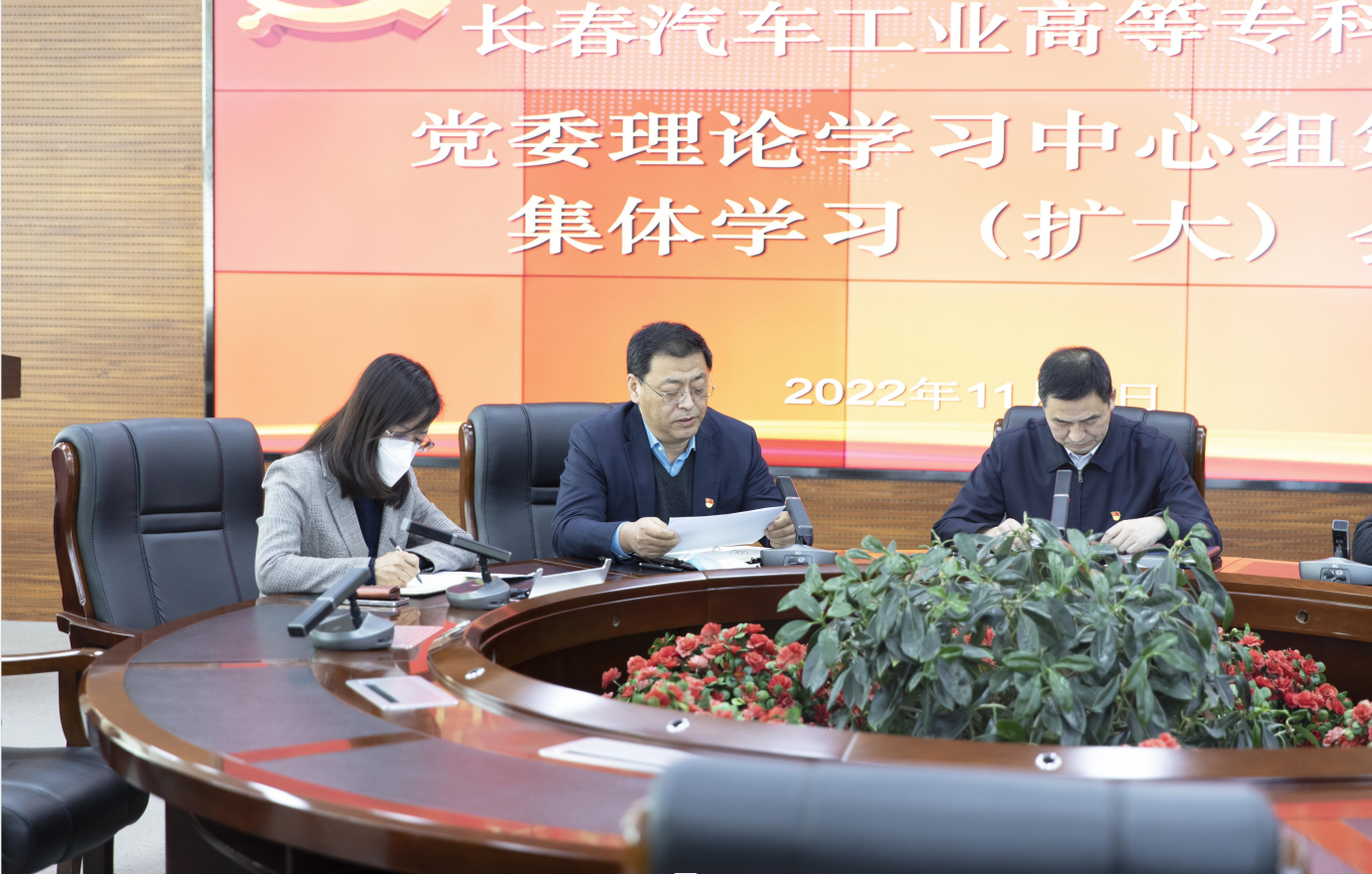 11月8日,学校党委理论学习中心组在图书馆505会议室召开集体学习(扩大)会议,专题学习党的二十大精神。会议由党委书记安军主持,校领导班子成员和副处级以上领导干部参加学习。