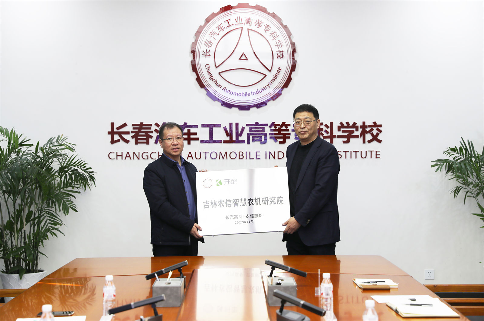 在与会嘉宾的共同见证下,双方领导签署战略合作协议,并为校企共建“吉林农信智慧农机研究院”揭牌。