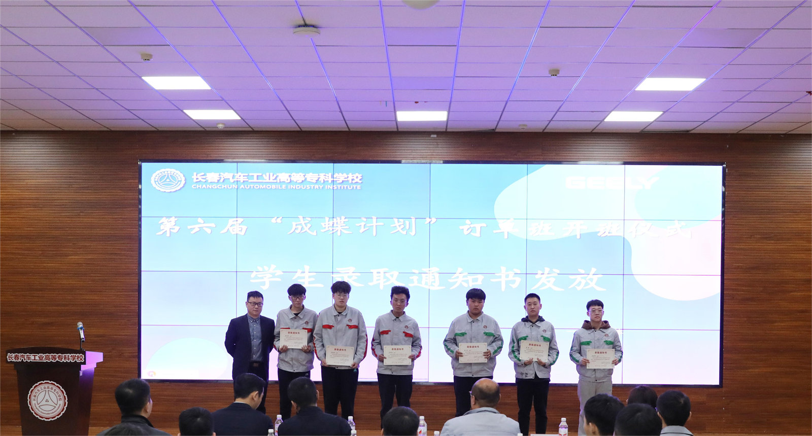 3月23日,我校与吉利汽车第六届“成蝶计划”订单班开班仪式顺利举行。浙江吉利动力总成有限公司人才经营部经理陈国还、人才经营部HRBP周晓博,我校副校长丁卓及相关部门负责人出席仪式。开班仪式由招生就业处副处长赵良富主持。 会议现场 丁卓致辞 赵良富主持 丁卓在致辞中感谢远道而来参加开班仪式的企业代表。在回顾了学校与吉利集团十七年来的合作之旅后,丁卓详细介绍了开展“成蝶计划”以来学校与企业在机制建设、课程研发、课题合作、软硬件投入等方面取得的成绩。丁卓表示,希望吉利订单班迎着国家现代学徒制教学模式改革的春风,外部依托企业技术力量,内部凭借学校强大底蕴,逐步形成专业共建、人才共育、过程共管、资源共享、责任共担的校企合作新局面。 陈国还致辞 陈国还在发言中感谢我校对吉利集团一直以来的支持,并充分肯定了我校毕业生的优异表现。陈国还表示,今后企业与学校将在人才培养、课程开发、师资提升、课题合作等多方面加深合作深度,拓宽合作广度。希望校企双方继续加强交流,携手共建校企融合新模式。希望订单班的同学们通过教学与实践相结合的形式,锻炼自己的水平和能力,精修技艺,早日化茧成蝶,实现人生梦想。 颁发班主任及指导教师聘书 颁发学生录取通知书 陈国还和丁卓共同为订单班班主任及指导教师颁发了聘书,周晓博为订单班学员发放了订单班录取通知书,订单班学生代表汽车工程学院王帅同学进行了表态发言。 订单班学生代表发言 截至目前,五届订单班400余名长汽高专学子就职于吉利集团,为企业发展贡献力量。未来,校企双方将以市场需求为导向,以助力吉利集团建设成为“具有全球竞争力和影响力的智能电动出行和能源服务科技公司”为目标,以学校“双高”建设和职业本科建设为契机,加强产教融合、资源共享、合作共赢,为推动校企深度合作打造全新典范。 合影留念 撰稿:招生就业处 焦海丽 审编:党委宣传统战部