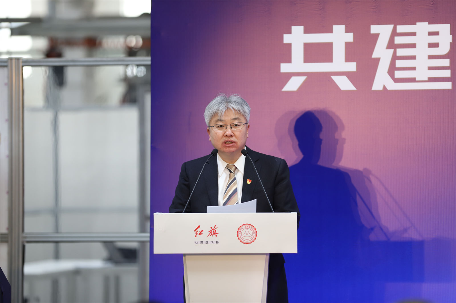 安军在致辞中向与会领导和嘉宾表示由衷的感谢。安军指出,校企共建“数智化高技能人才培养基地”,是一汽红旗和长汽高专发展进程中的一件盛事,是校企合作全面升级的新典范。学校倍加珍惜此次机会,将坚定不移打造“红旗工匠”名片,坚定不移构建校企命运共同体,坚定不移做好一汽的“服务员”,以更大热情、更大气魄投入到新时代发展的变革潮流中,在共同的伟大事业中书写更精彩的“红旗故事”。安军表示,在市委市政府的坚强领导下,在中国一汽的鼎力支持下,校企合作一定会结出丰硕成果,为加快推进长春现代化都市圈建设、开创振兴发展率先突破新局面,为中国一汽创建世界一流企业、长春建设世界一流汽车城贡献更多智慧和力量。