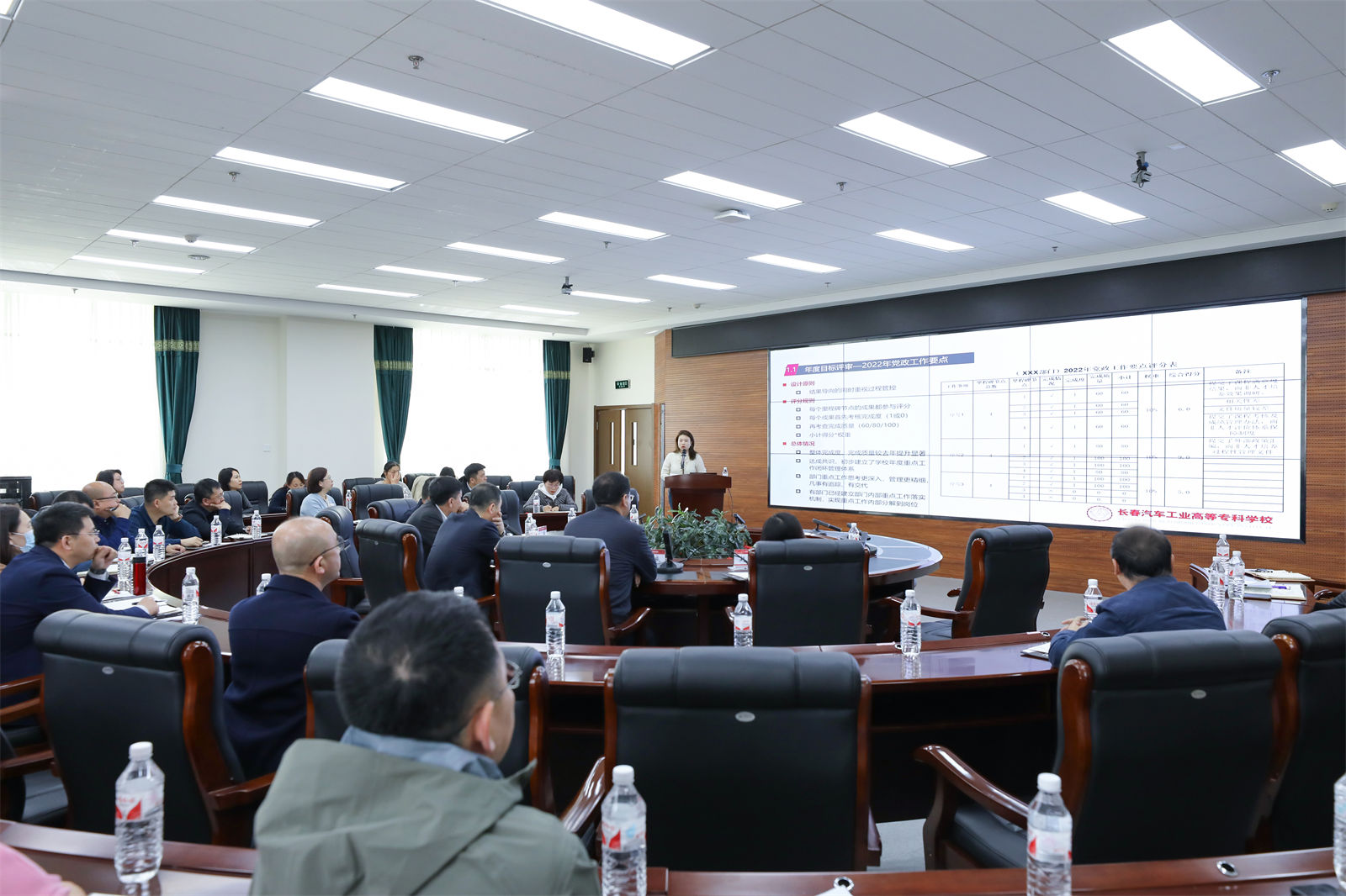 会上,绩效管理办公室绩效管理科科长靳光盈发布了2022年各部门质量评审考评结果及2023年学校重点工作计划拆解方案。