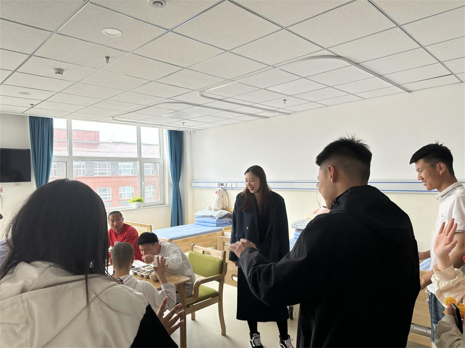 在福利院的生活区,学院师生们了解到特殊人群在福利院的居住环境和饮食起居,明白有“阳光”的地方就有爱与温暖。大家纷纷表示以后要从身边的小事做起,奉献爱心,让社会变得更加和谐美好。