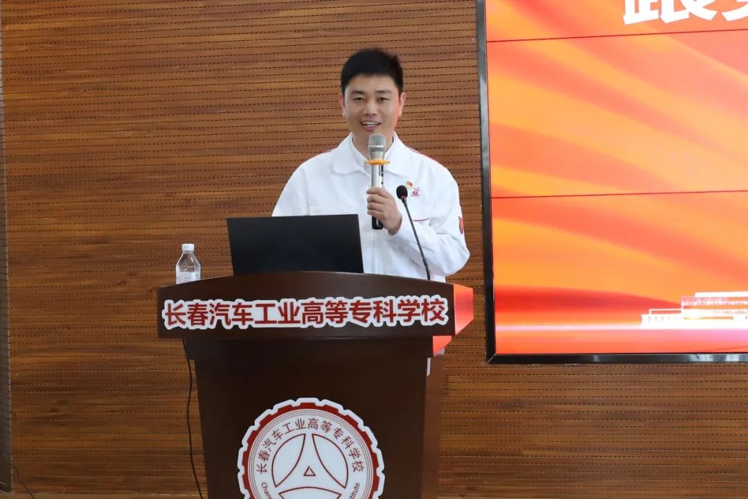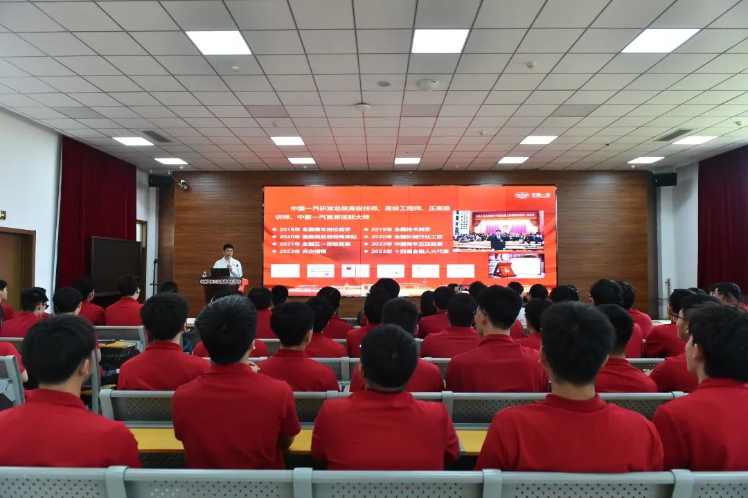 杨永修以《跟党走实学实干,练技能成才报国》为题,讲述了自己艰苦求学、初入职场、立足岗位等阶段的成长轨迹,分享了自身磨练意志、锤炼本领、匠心担当的逐梦历程。杨永修结合自身成长发展实际,提出了三点建议:一是不断学习、丰富自我,用丰富的知识在实践中发挥才能;二是精技好学、敢于吃苦,将遇到的困难和挑战转化为干事创业的强大动力;三是责任担当、技能报国,用实际行动助力中国自主汽车品牌崛起。