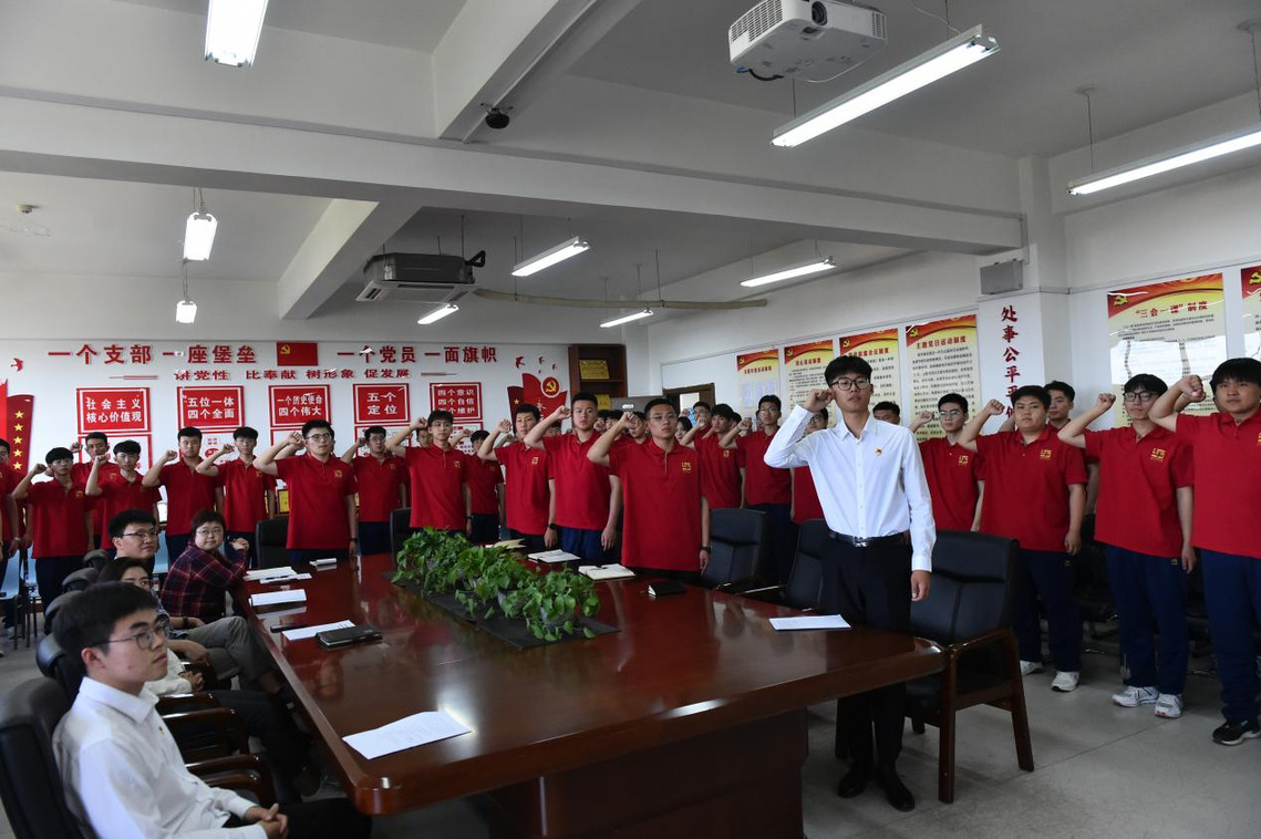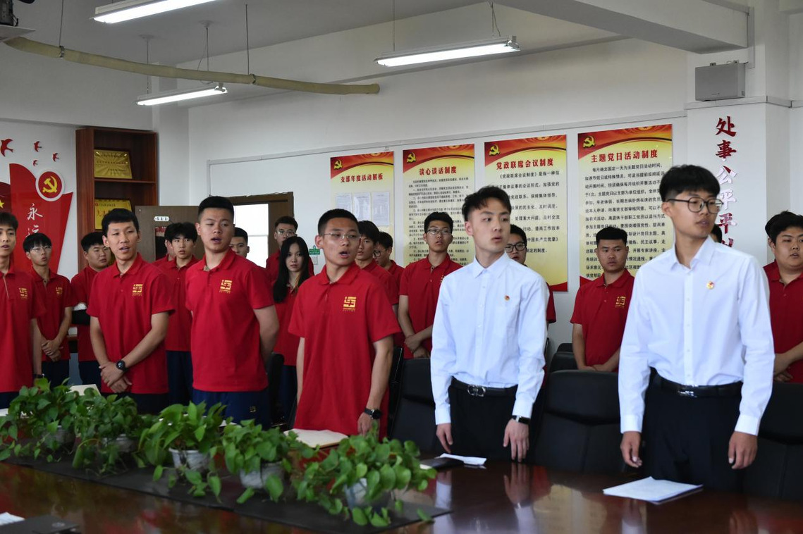 2022级机械制造及自动化专业学生范绍波带领新一期青马学员重温入团誓词,全体青马学员跟随领誓人进行了庄严宣誓。